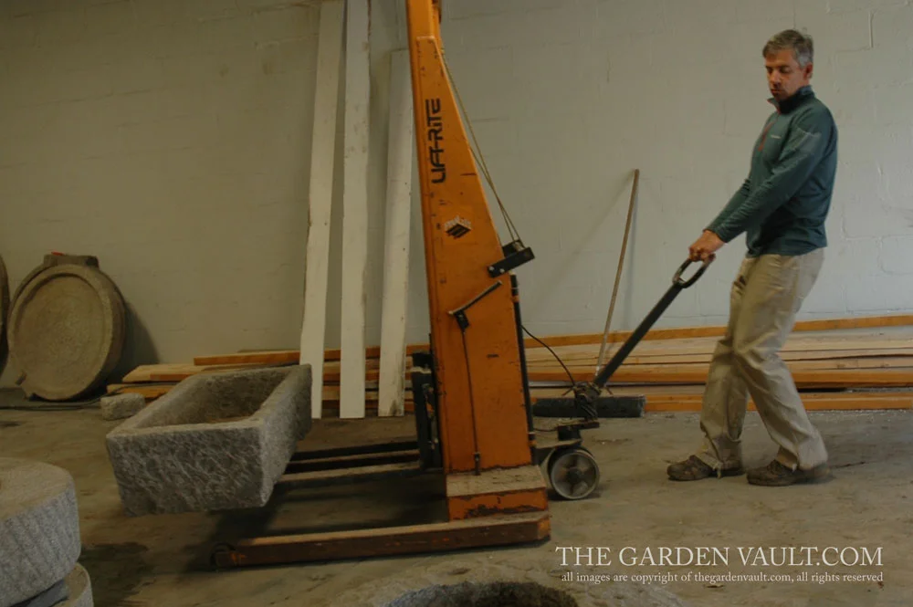 Rett has searched locally for unique garden features to offer his clients, but has discovered that domestic availability is scarce. He has therefore begun to travel abroad in order to offer a small inventory to his clients. He is drawn to the beauty of everyday objects: the simple millstone, the copper kettle. The substantial nature of the granite millstones and the rustic rivets and patina of a copper cheese vat have become new passions.
